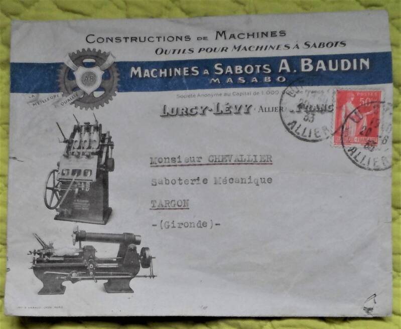 envoyé à Mr Chevallier sabotier à Targon (Gironde)