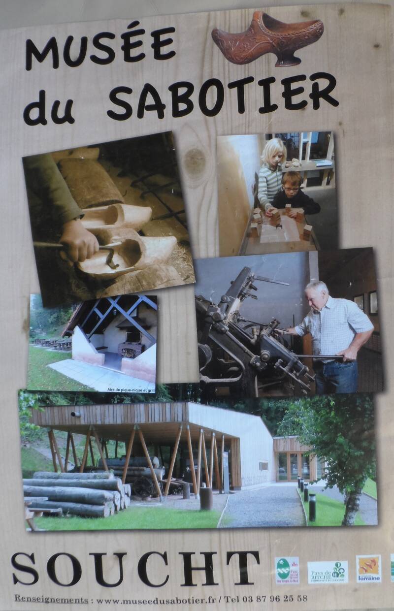 Le musée du Sabotier se situe dans la commune de Soucht et le département de la Moselle. Le musée présente une impressionnante collection de plus de 200 paires de sabots et retrace la vie des sabotiers.