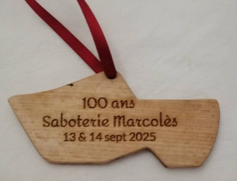 Badge réalisé par Pauline et offert aux exposants lors des 100 ans de la saboterie de Marcolès