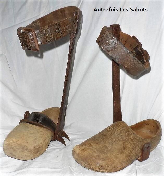 Paire de sabots dépareillées équipés de griffes (dont un sabot d'Ardoisier).